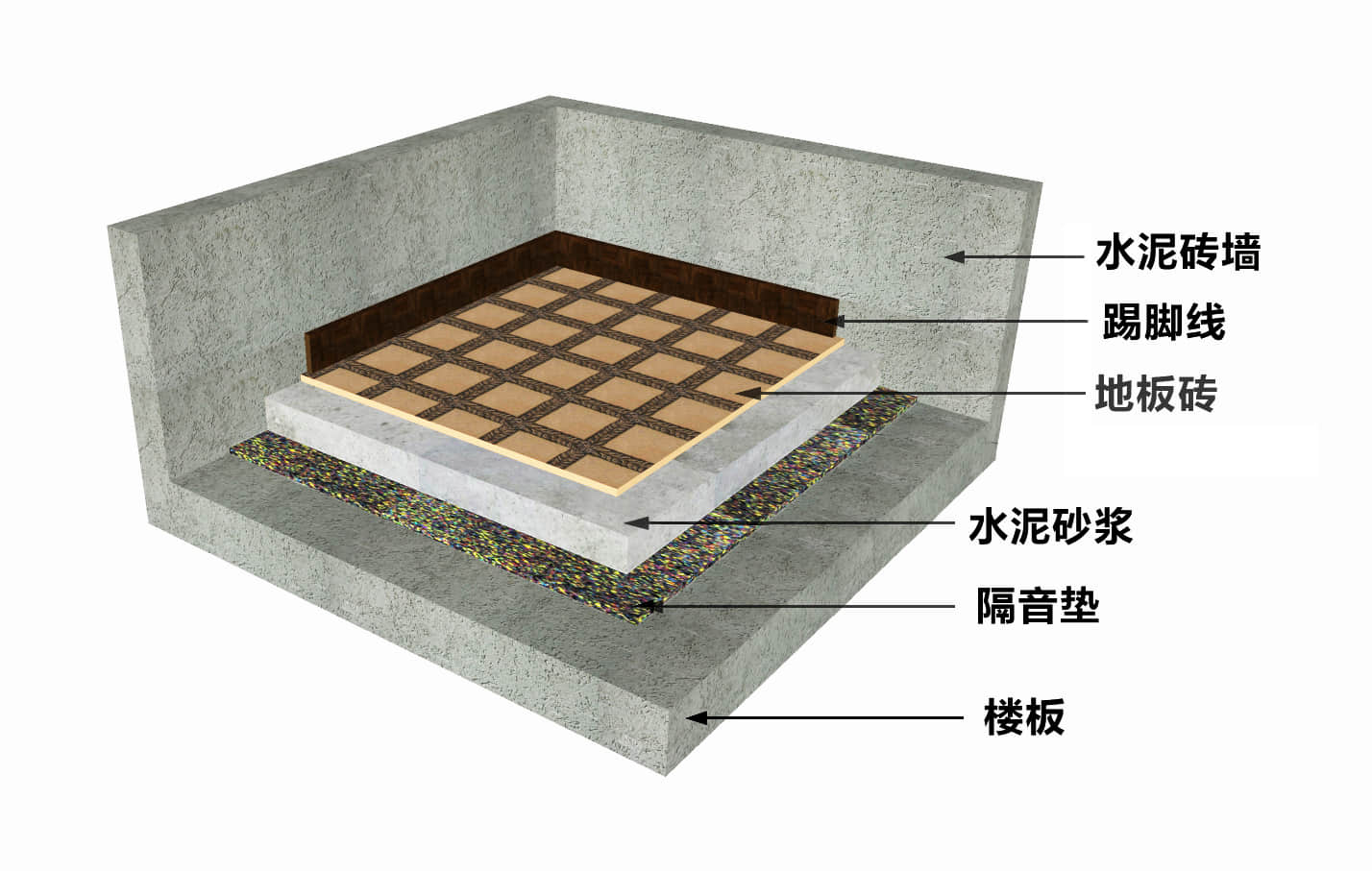 在隔音層上鋪設(shè)裝飾面層,如瓷磚、地板等,根據(jù)需要選擇合適的材料和顏色。
